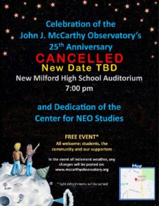 The McCarthy Observatory publishes a monthly newsletter called The Galactic Observer. The newsletter includes interesting space-related news, feature stories, current events at JJMO, and a calendar of both upcoming and historical space milestones.